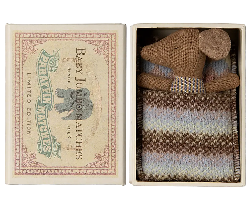 Maileg: sleepy/wakey baby in luciferdoosje (blauw)